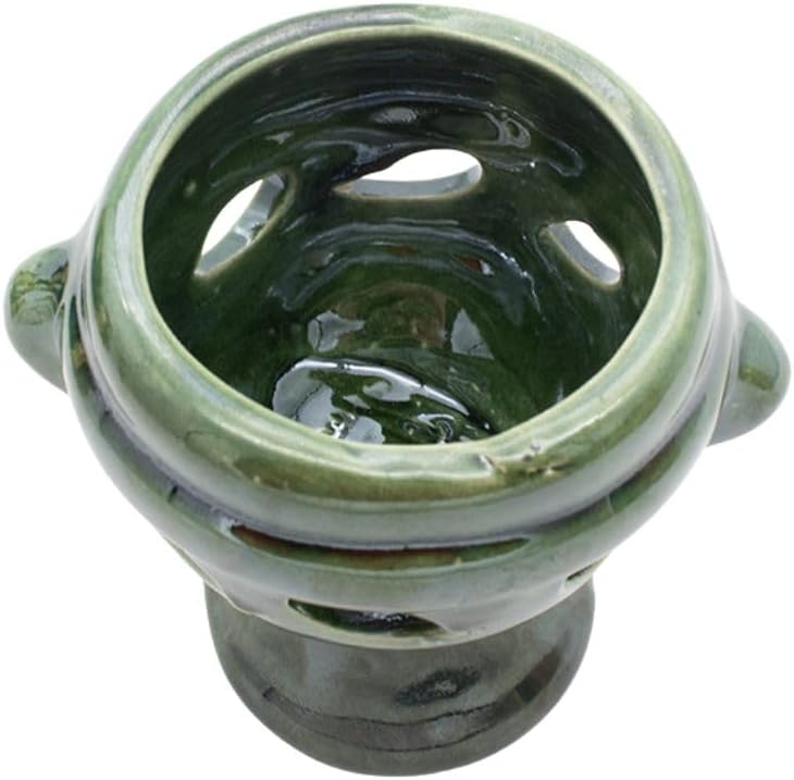 Material: Cerámica con acabado verde brillante y perforaciones decorativas.