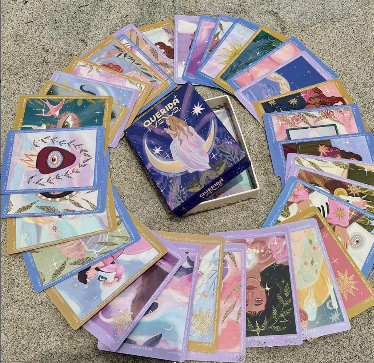 El Oráculo Querida Venus es una herramienta intuitiva creada con amor para acompañarte en procesos de autoconocimiento, inspiración y conexión. Cada carta es una ofrenda visual y simbólica, diseñada para despertar mensajes del alma y abrir espacios de contemplación, creatividad y sanación.